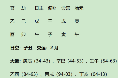 庚辰运(634-643),庚合乙官,辰合子而助财;财旺之运,良好之运。