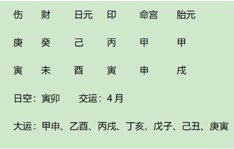 此年甲官生丙印,丙印制庚伤,小限午合大运寅,辰合酉;