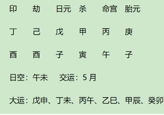 正印是天透地藏,一般也是可以取格的,但这个印主要是生己劫了,而且印、偏印同透,就取偏印格了。故不说什么正印格。